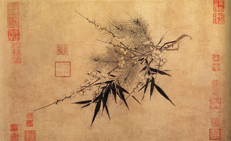Three_Friends_of_Winter_by_Zhao_Mengjian Publicada abril 12, 2014 com 468 × 286 em Folclore Chinês: Três amigos durante o tempo frio ← Anterior Zhao Mengjian (1199? – 1264 AD), Three Friends of Winter, in Qin Xiaoyi, ed., Famous Album Leaves of the Sung Dynasty. Taipei: Guoli gugong bowuyuan pianzhuan weiyuanhui, 1995. pl. 66, p. 222. album leaf, ink on paper, 32.2 x 53.4 cm
