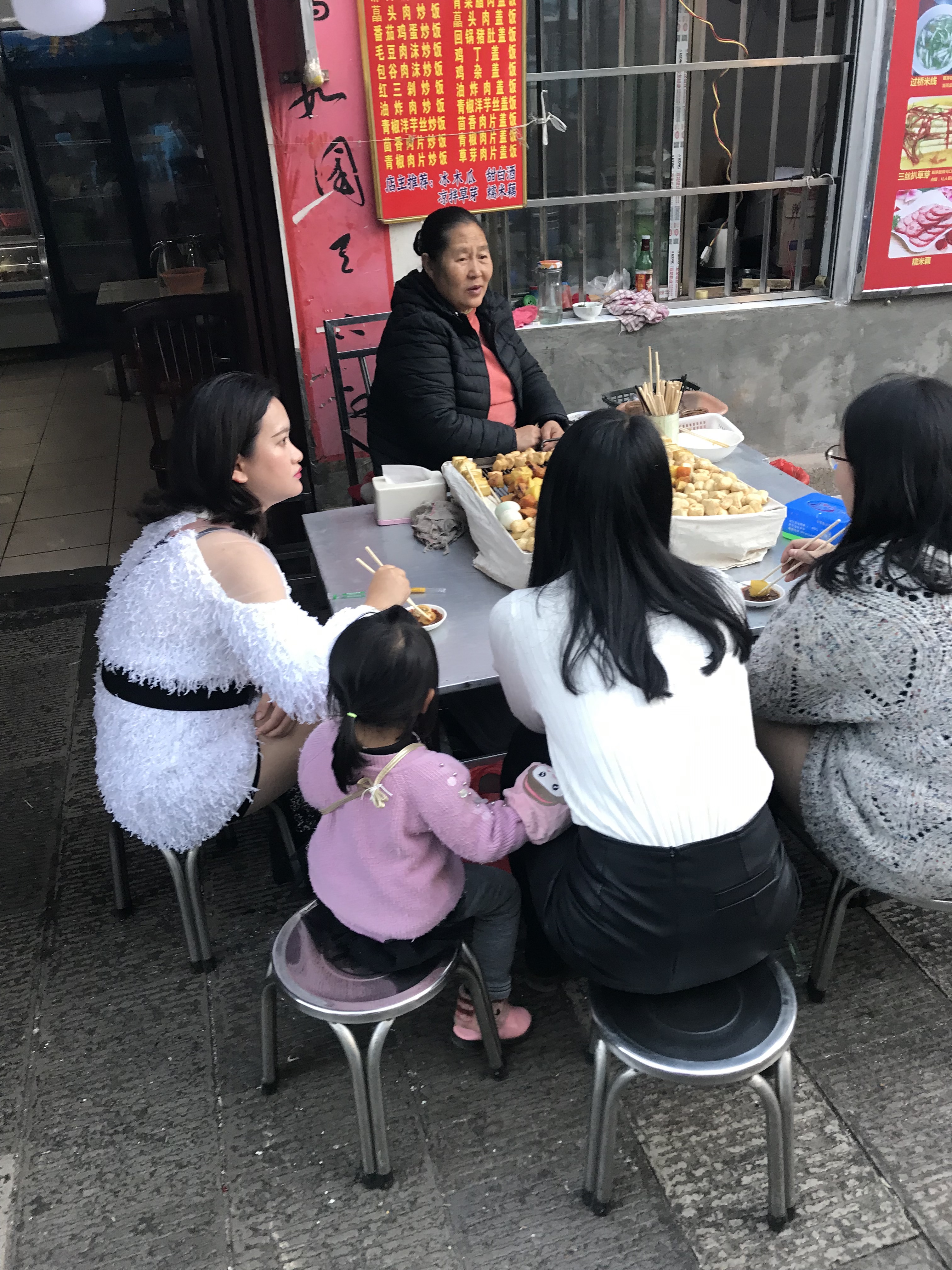 Também comemos nessa rua, num restaurante local. O prato típico dessa região é o tofu assado, bem pitoresco. Como se fosse um churrasco na chapa e que não convence meu paladar, apesar de não ser ruim.