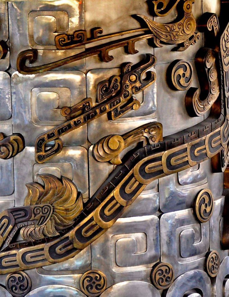O mesmo foi projetado por Zhao Zhirong, artista renomado em Shanghai na época, onde aparecem nove dragões adormecidos, esculpidos em bronze. Além de que nove dragões juntos tem o significado de ‘vida longa’, algo bem necessário para uma estrutura que sustenta o principal entroncamento viário da cidade.